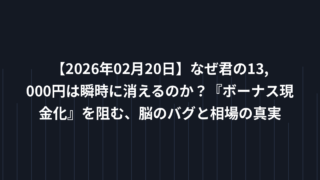 EA戦略 【2026年02月20日】なぜ君の13,000円は瞬時に消えるのか?『ボーナス現金化』を阻む、脳のバグと相場の真実