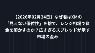 EA戦略 【2026年02月24日】なぜ君はXMの「見えない優位性」を捨て、レンジ相場で資金を溶かすのか?広すぎるスプレッドが示す市場の歪み