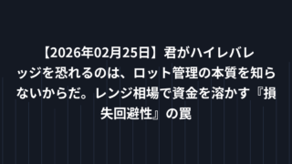 EA戦略 【2026年02月25日】君がハイレバレッジを恐れるのは、ロット管理の本質を知らないからだ。レンジ相場で資金を溶かす『損失回避性』の罠