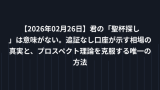 EA戦略 【2026年02月26日】君の「聖杯探し」は意味がない。追証なし口座が示す相場の真実と、プロスペクト理論を克服する唯一の方法