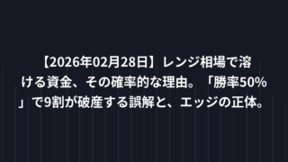 EA戦略 【2026年02月28日】レンジ相場で溶ける資金、その確率的な理由。「勝率50%」で9割が破産する誤解と、エッジの正体。